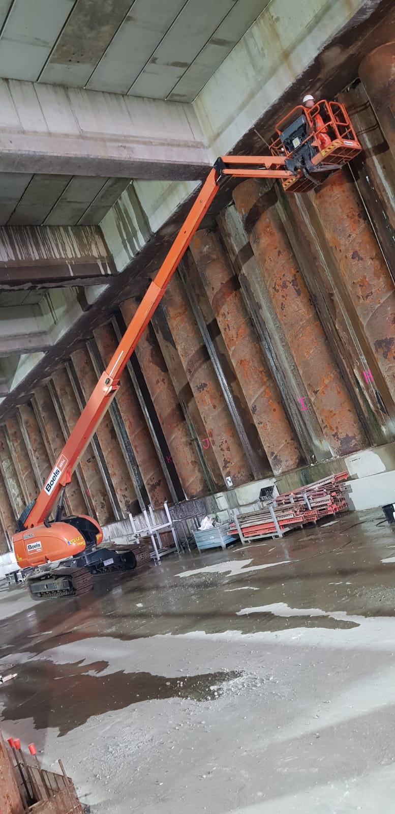 In de parkeergarage Q-Park in Den Haag ontstond het probleem dat er lekkage was uit de damwand. Bij aankomst hadden we geen goed beeld bij de totale omvang van het probleem. Na het uitwerken van een plan zijn we begonnen met het injecteren van een 2 componenten PU materiaal. Dit deden we op verschillen de plekken in de damwand. Op deze manier kregen wij een goed beeld van de omvang en waar de problemen zicht ontstonden.